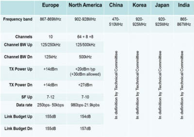 Dans toute l'Europe, un plan de fréquences sans licence est utilisé autour de 868Mhz, alors qu'aux États-Unis, il est de 915Mhz et en Asie de 433Mhz.